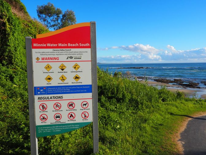 Shortly after 11:30am we crossed the border into NSW and waved goodbye to Queensland for the next 6 months. As mentioned on a previous blog, this trip isn’t a holiday, we’ll be working and visiting clients as we travel around. We are both fortunate that we have jobs that we can do if we have a phone, a laptop and internet access. As we have a WiFi hotspot in the car we have internet access wherever we go. This part of our journey’s final destination is Newcastle where we have a couple of meeting with clients but on the way there we will be stopping as Minnie Water and Wingham and probably a few other places in between.