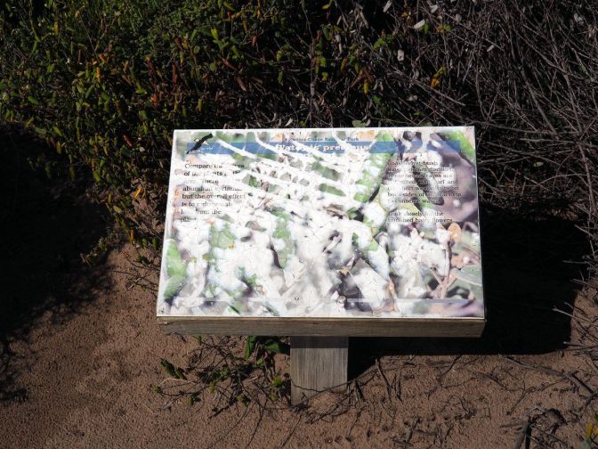 On first glance there was no beach and it was distinctly underwhelming, I wondered what all the fuss was about. That was until I read this poster on the wall of the BBQ area right beside me. Then looking around I saw this sign in the distance on a rock with an arrow to the beach.