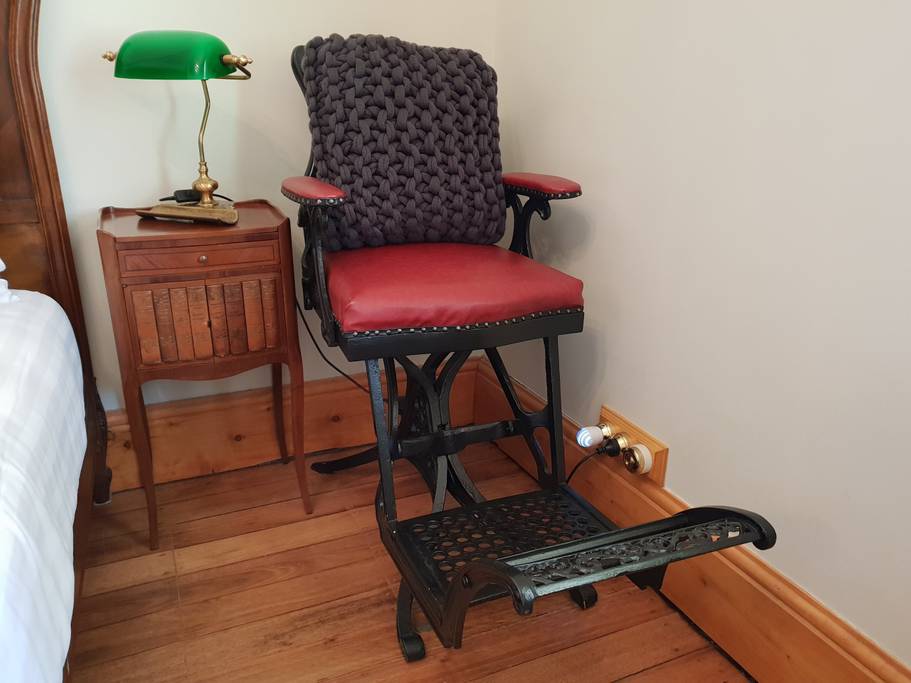 We left the idyllic Huon Valley Caravan Park for a couple of nights in Hobart to catch up with Maddy and Steve for Steve’s birthday. We’d booked a unique and beautiful house in Hobart for the weekend. It has been restored back to it’s original grandeur and has been filled with interesting old objects like this ancient barbers chair.