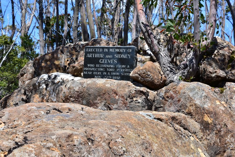 “Among the early settlers in the 1840s were the Geeves family who founded the township of Geeveston. They explored much of the southwest and cut the first track from Geeveston to the Hartz Mountains. As a result of this track, Hartz Mountains became one of Tasmania’s earliest popular bushwalking destinations. On 27 November, 1897 the elderly Osborne Geeves, his three sons, Arthur, Richard and Osborne, and their cousin, Sidney, were overtaken by a blizzard when returning to Hartz hut from a prospecting expedition near Federation Peak. They struggled on over Hartz Pass to Ladies Tarn, but both Arthur and Sidney were faltering and suffering poor vision, and their loads were taken. Within a few hundred metres of the old Hartz Hut all the party were exhausted and stumbling. Sidney was carried and dragged by Richard to the hut but he died soon afterwards. Arthur was left with his father, and died in his arms with the last words, ‘Don’t leave me, father’. Both had died of hypothermia (a lowered body temperature) as a result of prolonged exposure to severe cold.”