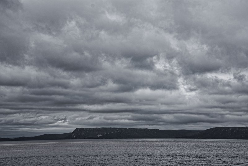 The day was grey, colours were muted. For muted read “there were no colours” but the scenery was amazing. We were at the edge of Tasmania. 2,400 kilometres away is New Zealand.