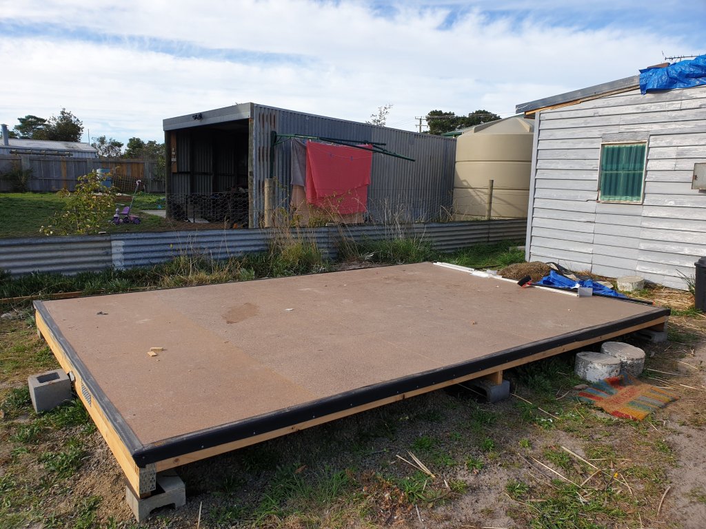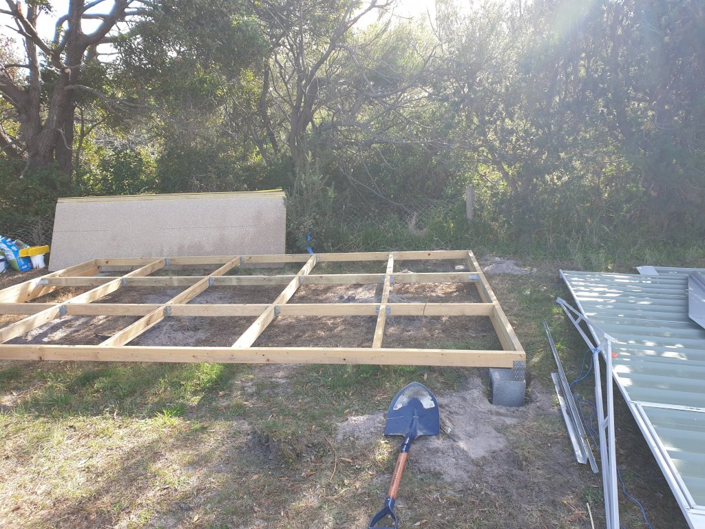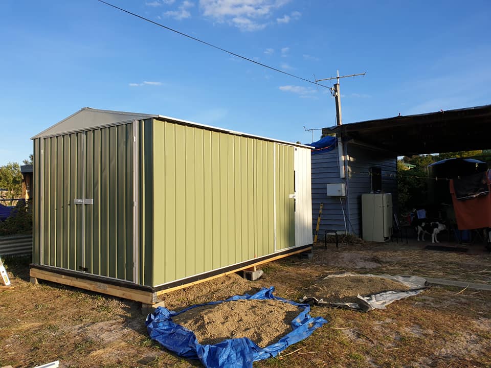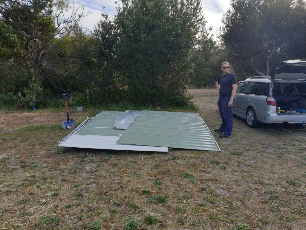 Although it wasn’t mentioned in the previous blog we bought a shed, a tin shed off Easyshed on line. It was for storage and for some extra space to do stuff. Steve, Maddy, Jenni and I built this new shed in the perfect place, beside Shack One. Perfect to get power and water to it and to block the neighbours view. When it was up we realised it wasn’t a good place at all. It looked incongruous, out of place, wrong. So we decided to move it across the garden to a better place under the trees. So I moved it with the help of a guy called Simon who I found on Airtasker. It took us a week to build it and me a day to move it with Simon’s help. It was a big day. Here’s the pics, few words.
