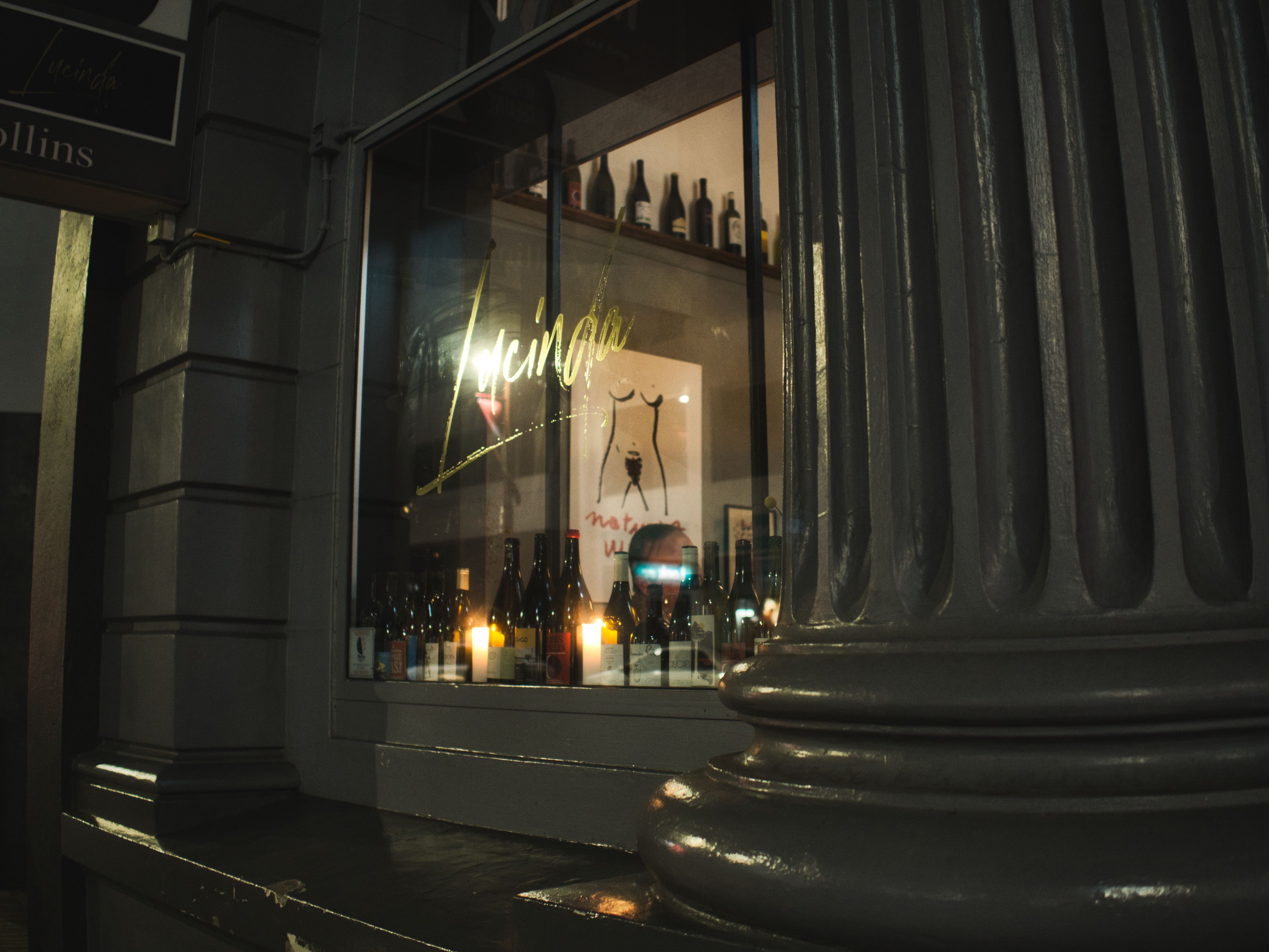 Most pictures I saw of Lucinda’s on the internet was of this poster of Naturist Wines they have on the wall. I thought I’d try a different angle on it and get in the Lucinda logo at the same time.