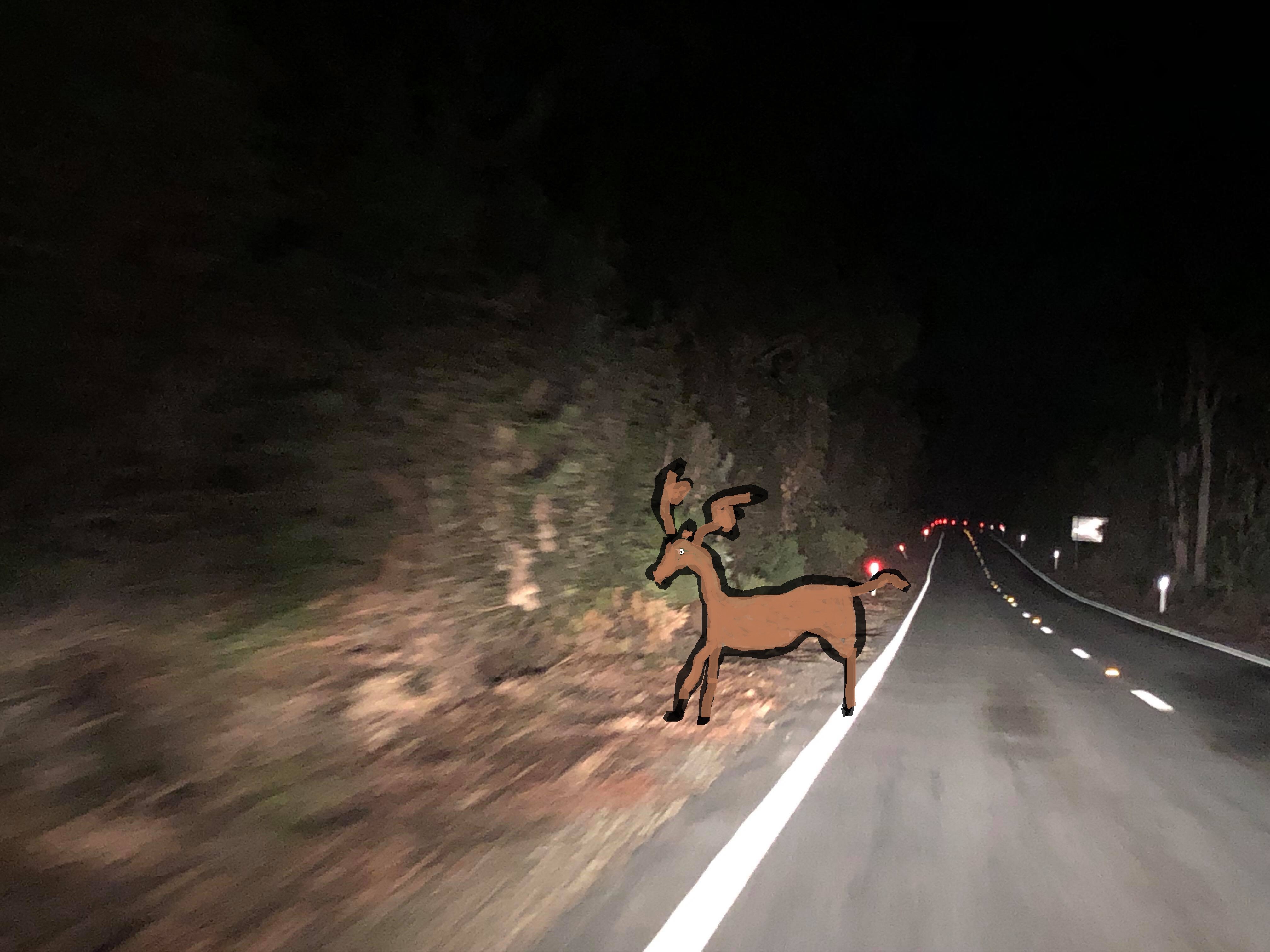 Next day we drove the 5 and a half hour journey to Marlo for our overnight at the Marlo Hotel. The last few kilometres were in pitch dark through a forest. We always drive slowly at night on country roads in case we hit a wild animal. We’ve seen quite a few small animals and a kangaroo or two on our previous drives in similar conditions but this time we saw not one but two deer grazing at the side of the road on two different parts of the journey through the forest. Jenni grabbed the phone and fired of a few shots to capture the moment. It was pitch black, the deer was far away and running for it’s life and we were going at 30kph. This is the best picture we got. No Photoshop editing was used in this picture. Honest.