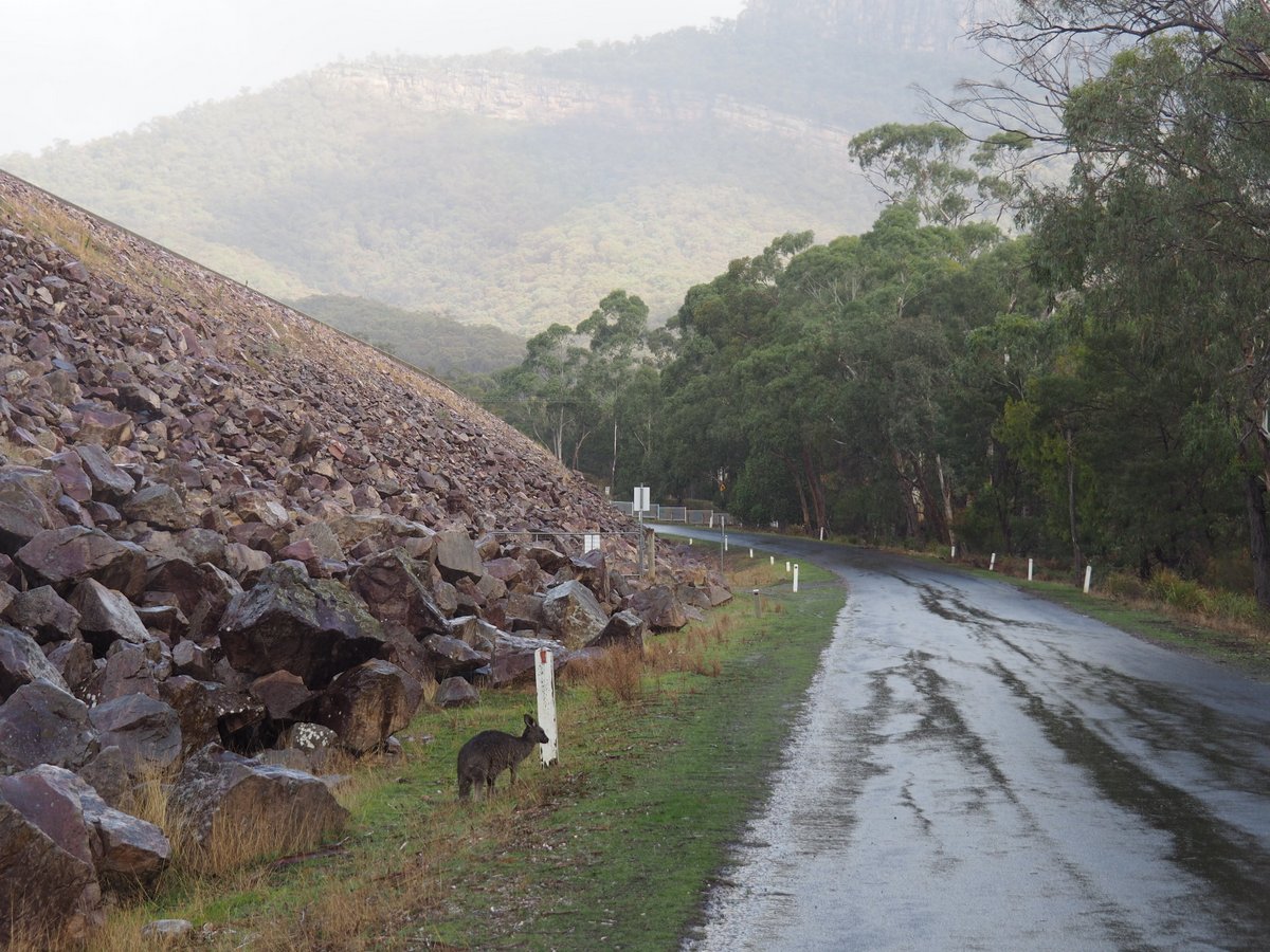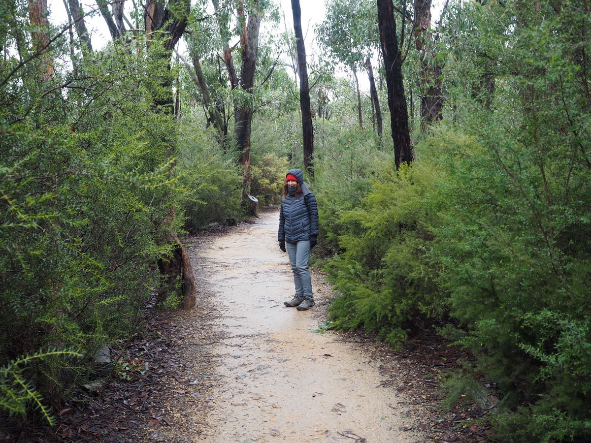 Halls Gap is beautiful. Even in the cold, wet and windy weather we experienced we could see how wonderful this place is. We did get out to explore a bit. There was a reservoir near the camp site so that was the first place we went to for a short walk. We put on ALL our warm clothes then covered that with ALL our wet weather clothes and set forth.