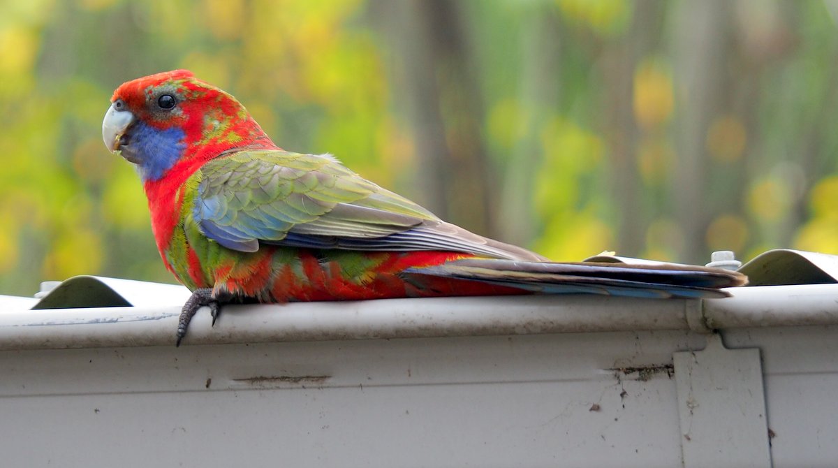 This little guy was one of many who swarmed all around. This one was drinking from the gutter on the cabin next door. Love his colours.