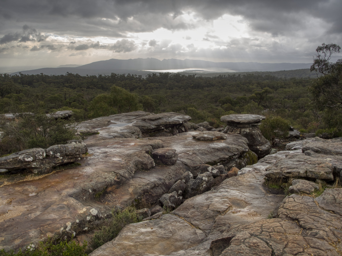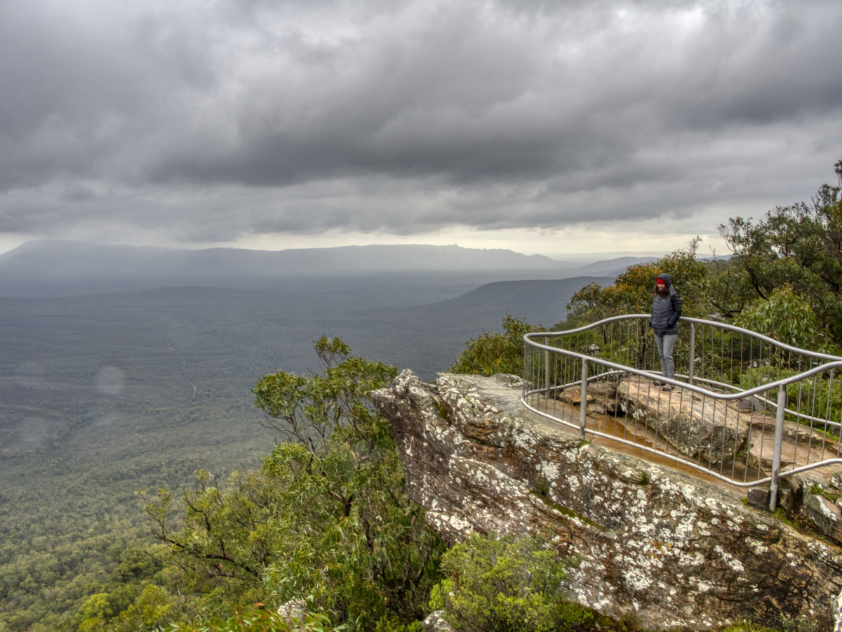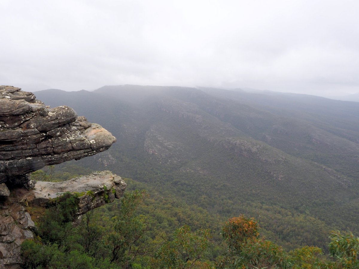 And so the next day we put on all our warm clothing and packed all our wet weather gear and drove up into the mountains to Reed’s Lookout. This is one of the best spots to view the Grampians and the valleys. We were initially going to try and get to it for sunrise but it was too cold and it was cloudy anyway so we settled for a trip after breakfast. Even in the overcast conditions the views were amazing.