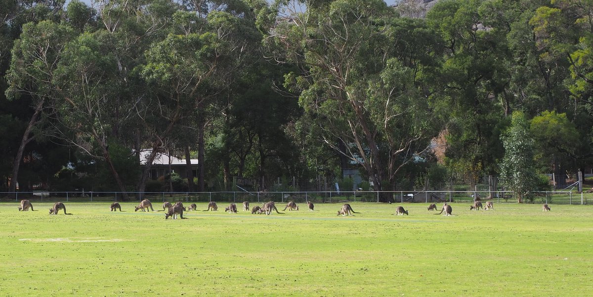 On the way up to the lookout we passed a sports field full of grazing kangaroos. If they were still there on the way back, I told myself, we’d stop and record the scene. They were and we did. It’s still as wonderful to me as a whole Serengeti full of wildebeest.