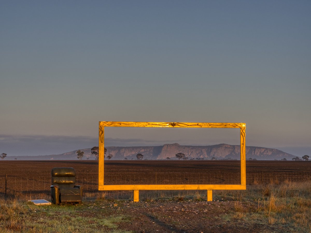 In 1960 Natimuk Artist Greg Pritchard built a large wooden picture frame. It has since been upgraded to a steel frame. Someone kindly added an armchair to the art establishment so Jenni and I took full advantage of both. I love this picture.