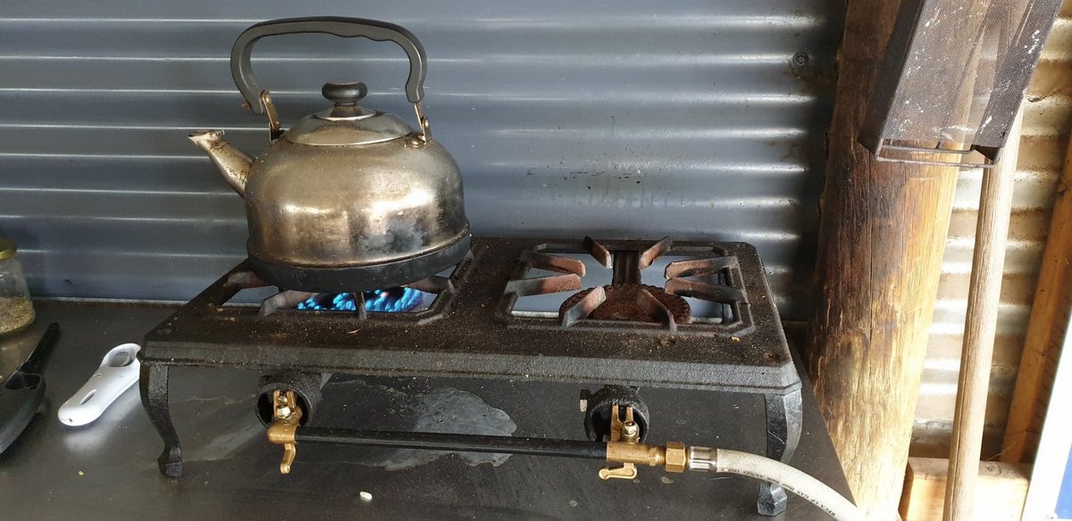 We used our own little stove as the ancient, but very functional, camp stove was in a place not sheltered from the wind and we couldn’t get the soup to heat. This was from earlier before the wind got up when we were making coffee for breakfast.