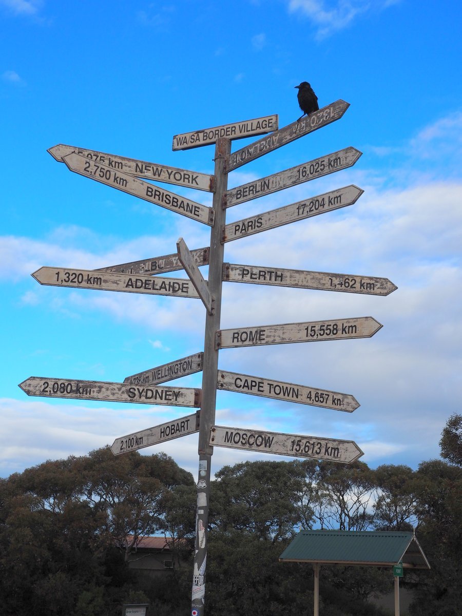 Shortly after the Nullarbor Roadhouse we crossed the border between South Australia and Western Australia at a place imaginatively called Border Village. This signpost marks the spot.