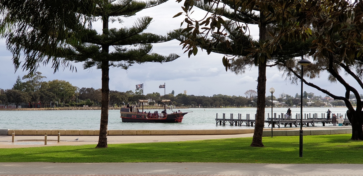We stopped for lunch briefly on the way in Mandura. There’s a Pirate Ship thing going on which I haven’t spent the time investigating why? Anyway the Pirate Ship came in as we were walking back to the car so here it is.