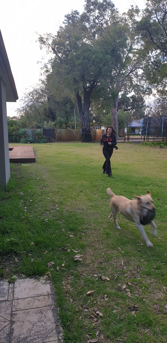 Polly, the Golden Labrador, was a most enthusiastic dog. She was a little arthritic so we had to be careful with the exercise and not overdo it. We did a couple of stints of running up and down the (extensive) garden each day to keep her moving.