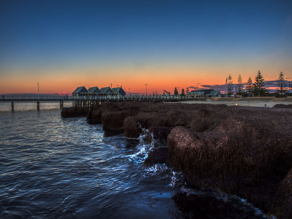 Every year, at this time, tons of seaweed piles up on all the beautiful beaches around here. The locals and visitors might not like the sight and the stink but the local wildlife love it…so it stays. It supports and feeds a lot of animals. At the end of the season it is bulldozed into trucks and used for fertiliser. We were lucky, the first day we visited the Jetty the sunset was pretty good. There were a lot of people trying to photograph it.