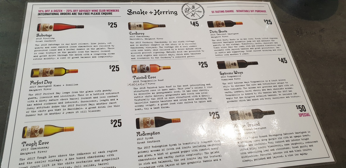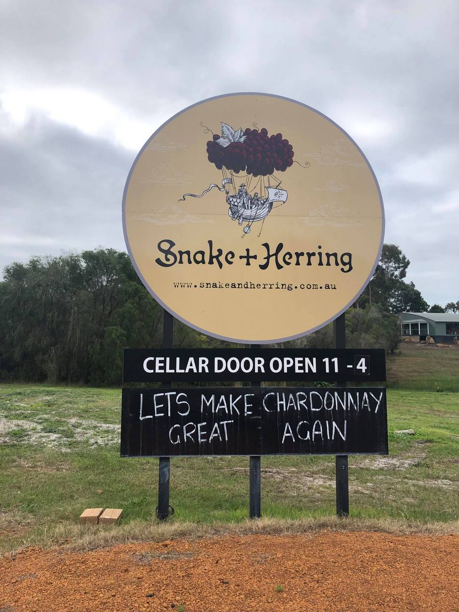 And the excellently named Snake and Herring winery which we stopped at just beacause of this sign.