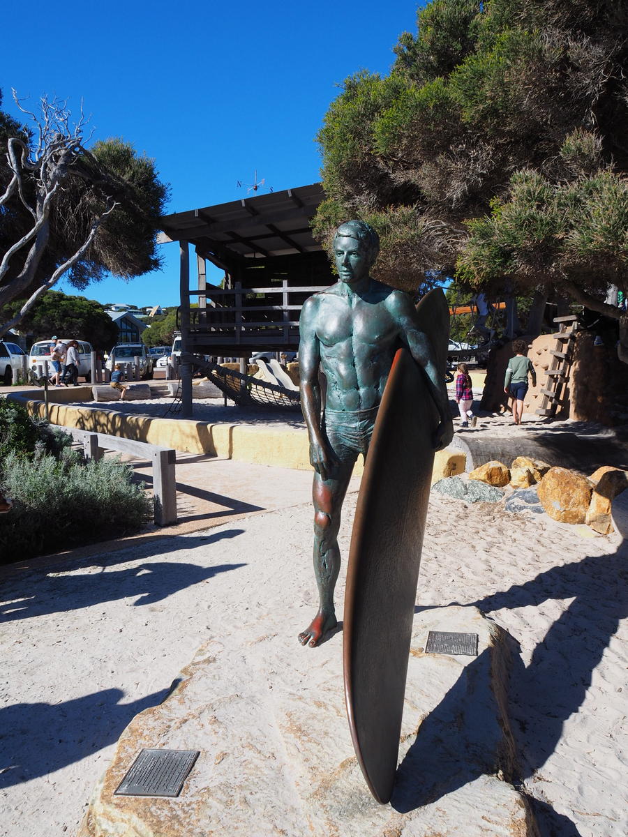 On a day trip from Busselton we visited Yallingup. It is a seaside resort and came recommended by an Airbnb host. The local camp site also gets 4.5 stars in Wikicamps so in preparation we stopped by. It is one of the few camp sites near the ocean in this region and is famous for its surf breaks. I was upset to find there was a statue of a surfer on display where they had stolen my body image without my permission. Not sure how to progress that claim so I may have to let it go. Picture of said statue appears in a few moments, read on.