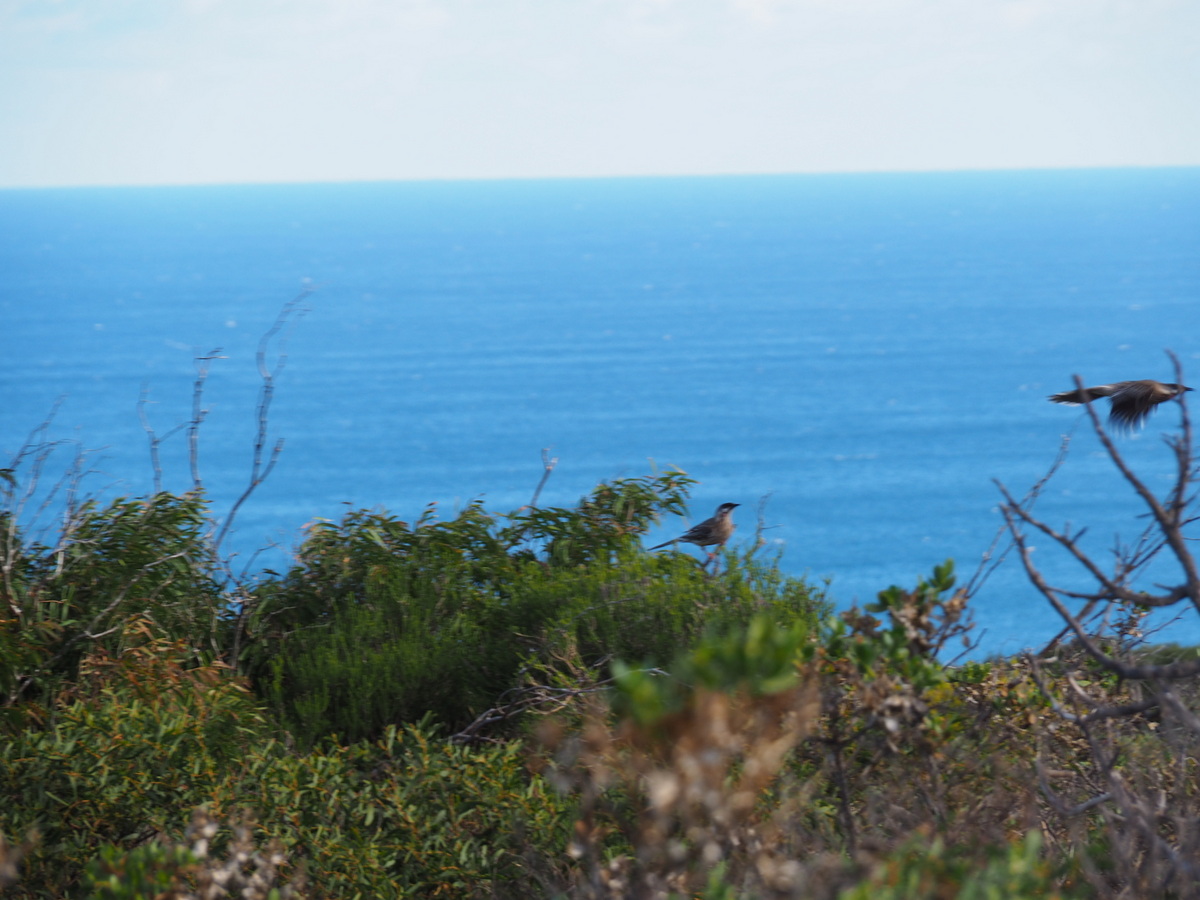 The walk between Sugarloaf Rock and the lighthouse was quite scenic but windy and cold, despite what the pictures show. There were a lot of birds flitting about, more on that later. It was very green, with Australian things growing. They probably kill you if you walk close to them.