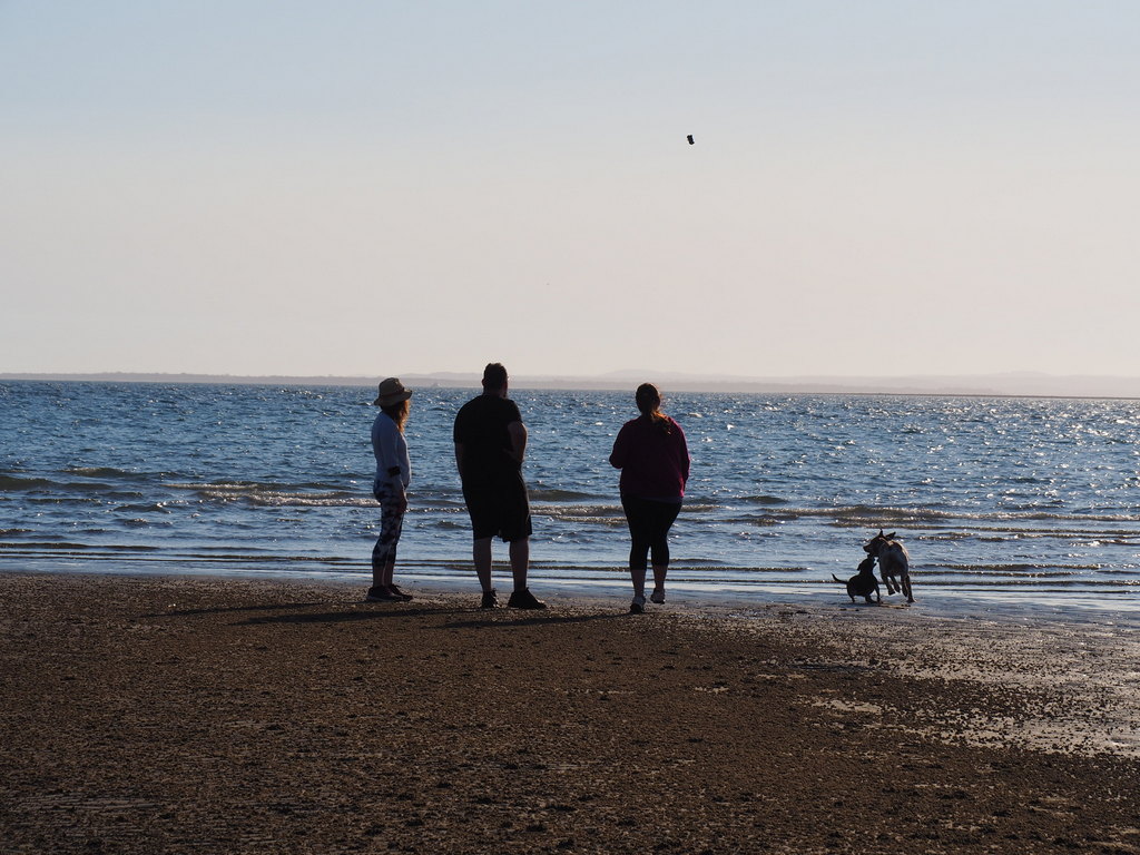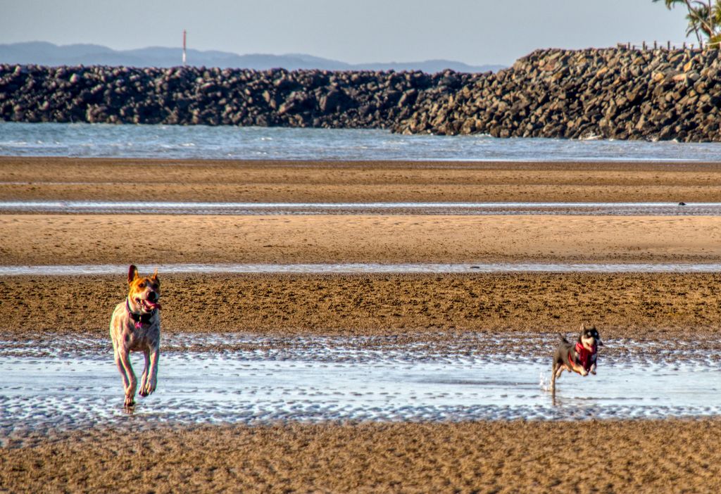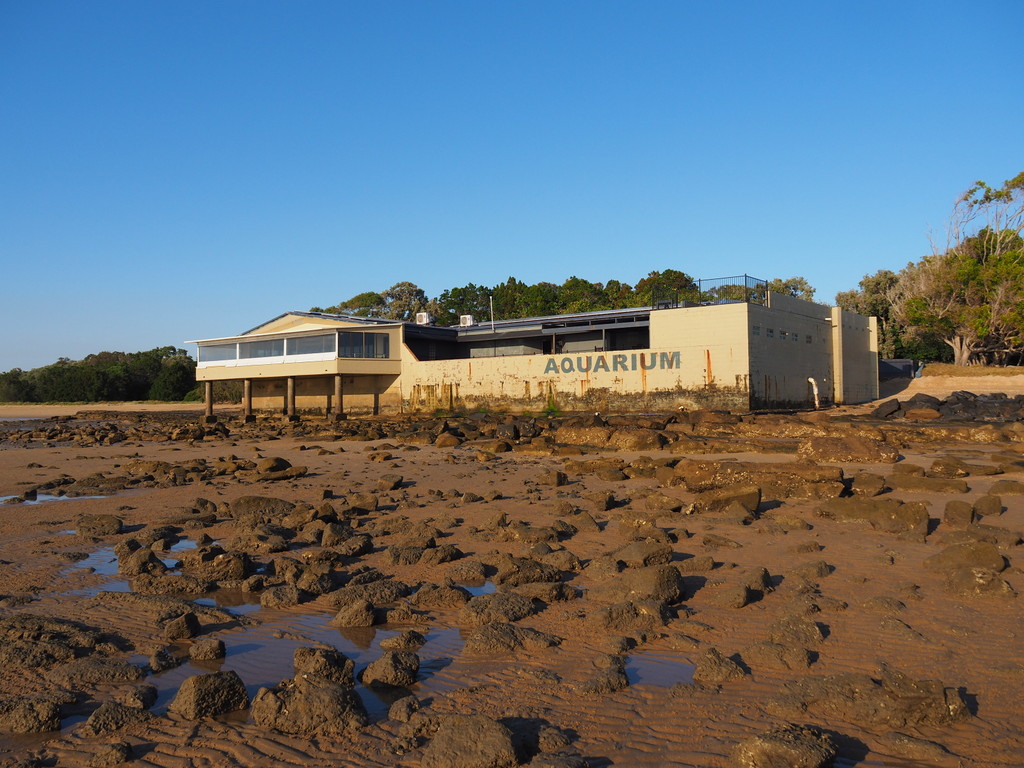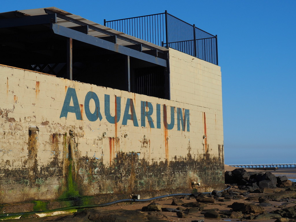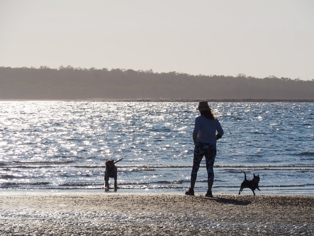 On one of the walks out we met up with Kemp, Jenni’s brother and wife Tonya and two of their dogs, Lemon and Denzel, for a walk along the shore while the tide was out.Lemon is the bigger dog on the left, Denzel the little one on the rightThe tide goes out a looooong way in Hervey Bay.We’d gone past the front of the Reef World Aquarium every day during our walks, This side of it was much more interesting. Here’s there web site. reefworldherveybay.comThe tide comes right up to the sign.Poor Lemon isn’t very well and won’t be with us for much longer. It’s very sad as she’s a lovely dog. It’s now all about making her last few weeks as comfortable and enjoyable as possible. She does pose well for the camera though.