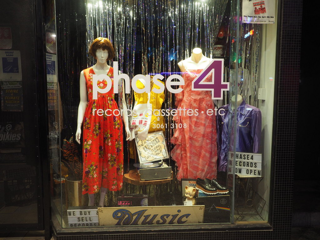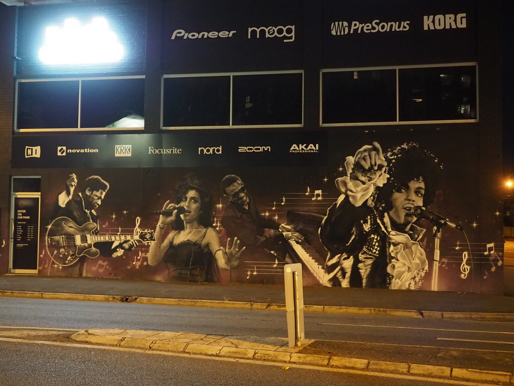 Some pretty impressive murals on the wall of this music shop.