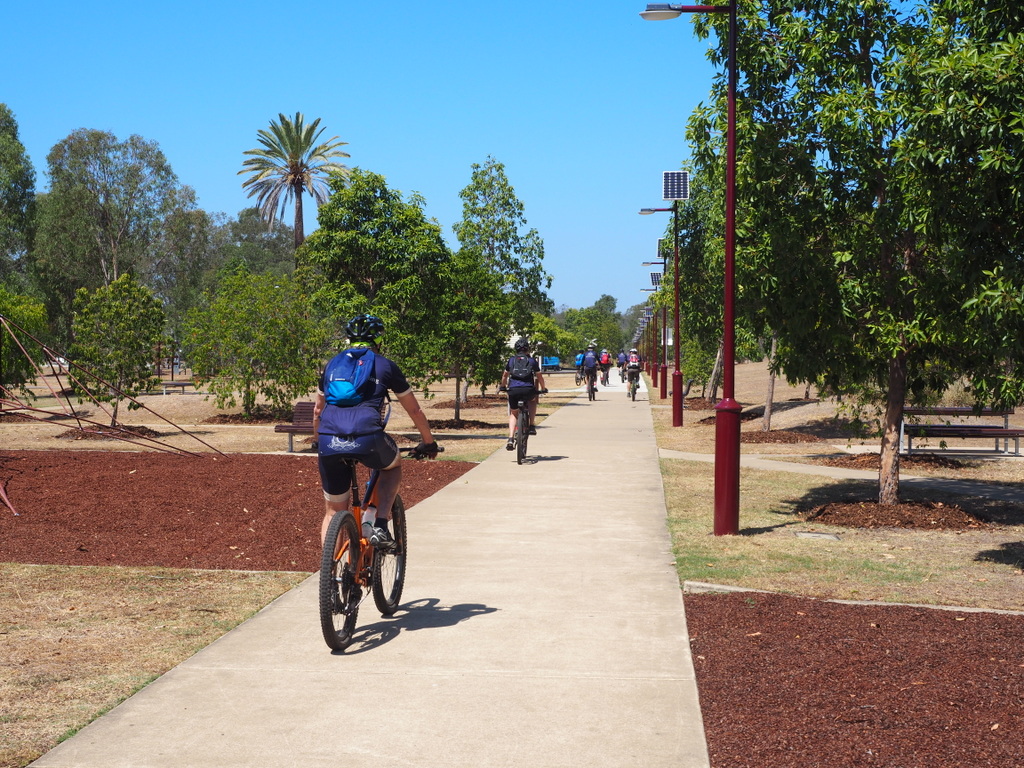 Coincidentally I recognised the two orange Scott bikes I saw earlier perched on the back of a ute in the caravan park and the two guys who paused and ask me if I was alright sat in chairs beside it. I said hi and stopped for a chat. Jim and Sue, as I discovered were their names, had ridden the 50kms trip as prep for the next days “Chicks who ride bikes” ride. Well Sue had ridden, Jim kept her company. Also spoke to them the next day, after the “Chicks who ride bikes” event. They said if you had turned right the ride is much easier going and much more interesting. However they also said they got hit by swooping magpies 5 times along the ride. I’ll take the dusty harder trail without magpies every time.