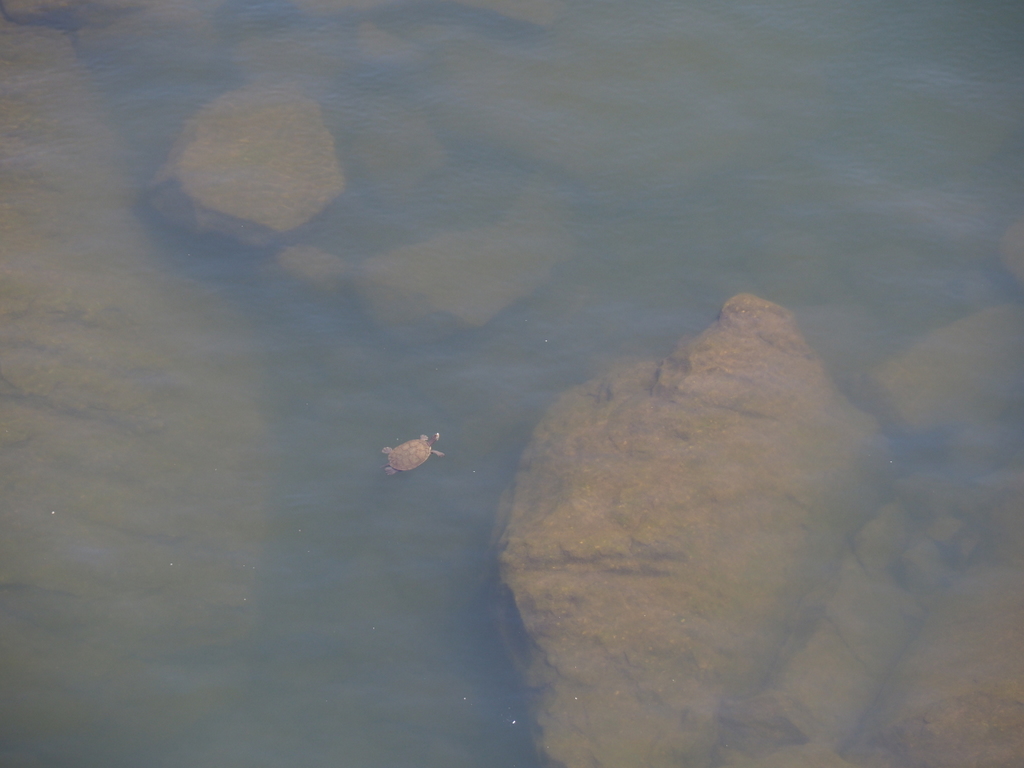 Did you ever stand on a bridge or a jetty or a harbour and look into the water to see if you can see anything? Initially there’s nothing. Then you spot a single fish, then your brain pattern matches that and you suddenly see a few more fish. And then you realise the place you were looking at was full of fish. Well I looked into the spill way and saw empty green water. Then I spotted a single thing, it Looked like a turtle.