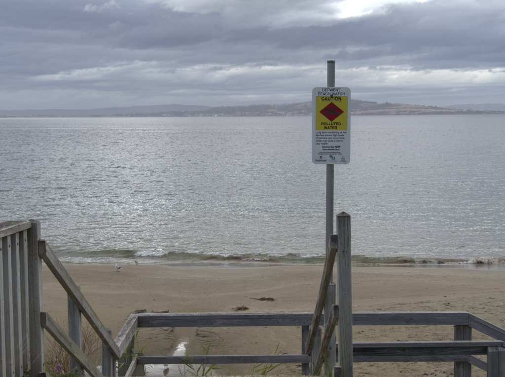 We could see that the beach was used for some ceremonies.The weather was over 35c on quite a few of the days we were there, plus it was still school holidays. So why wasn’t the beach packed with people and swimmers? Then we found this clue.Mutant 3 eyed fish ahead I read from this.