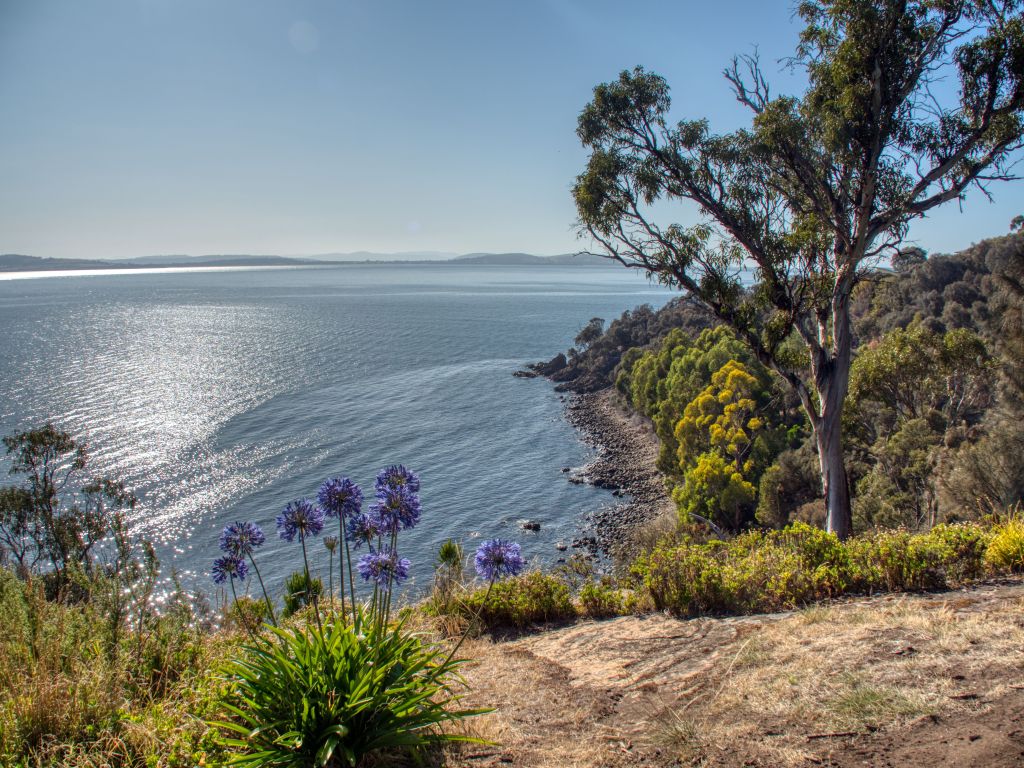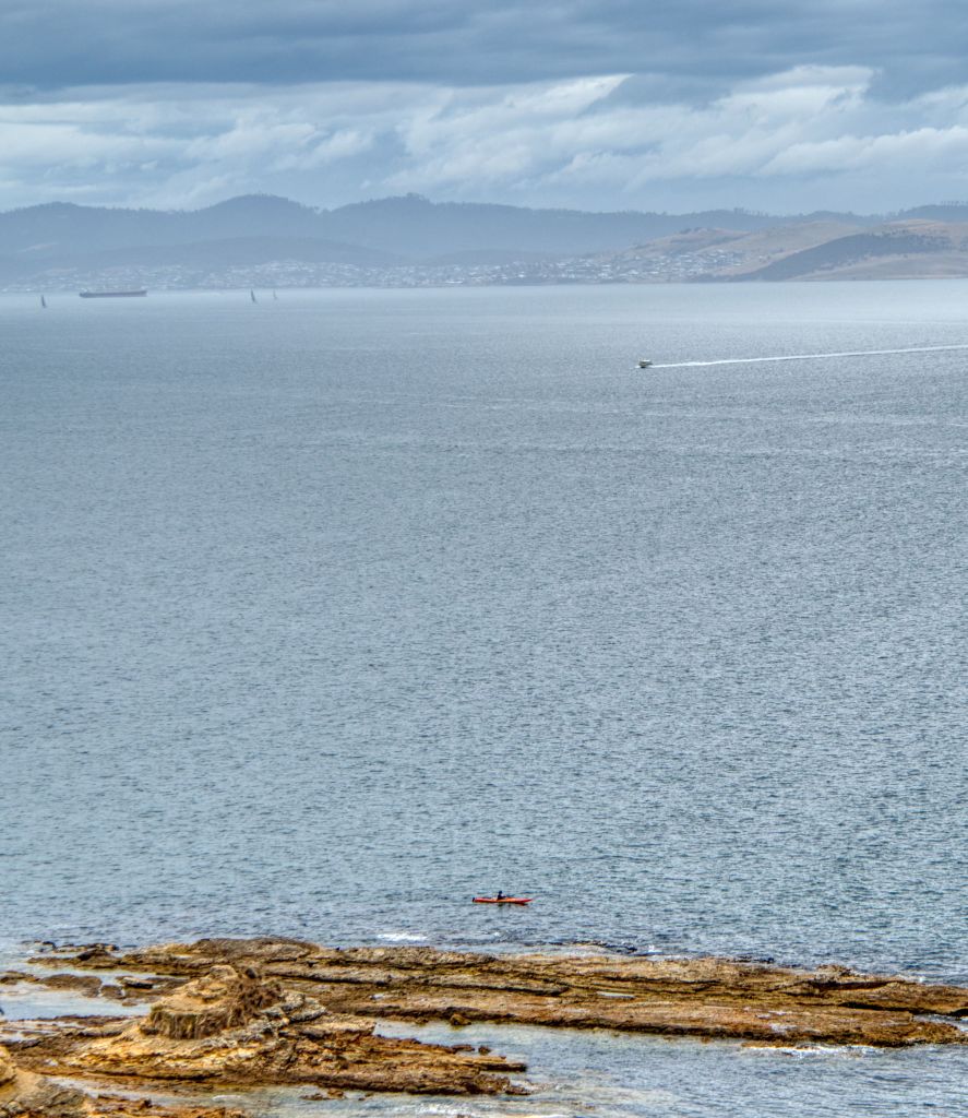 On one of the days the light was almost liquidView across to South Arm and Opossum BayThere was always plenty of activity going on in the water, this is Pennicott Eco Tours showing some lucky tourists the attractions around the cost of this part of Tasmania.View from the headland walking pathOften we saw kayakers exploring on their ownBeautiful coastline, I can see why it is popular.We did investigate if we could hire some kayaks but you can’t in Blackmans Bay.Lots of yachts at the weekends, seemed like it was a raceThey lookedlike they were going to sail around Bruny Island which was just off the coastThe red sails make you go faster obviously