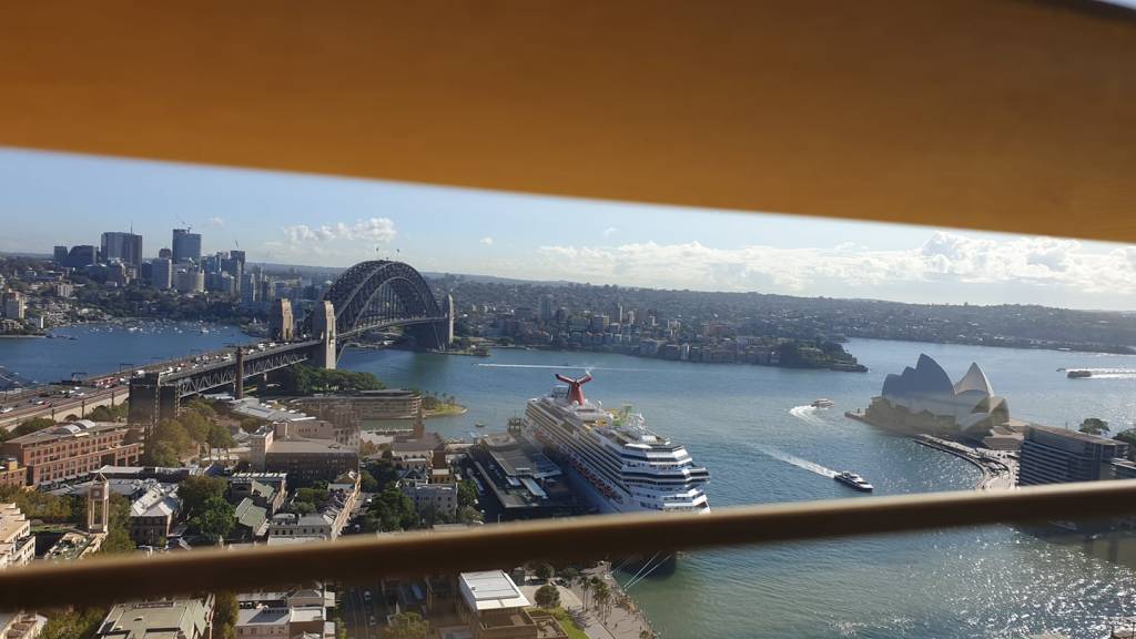 I have been visiting this client for years, they have one of the best views over Sydney Harbour but they have these automatic blinds that close to provide shade from the direct sun. They have never been open more than a crack but this day they opened up a bit more and allowed me to get this snap on my phone.