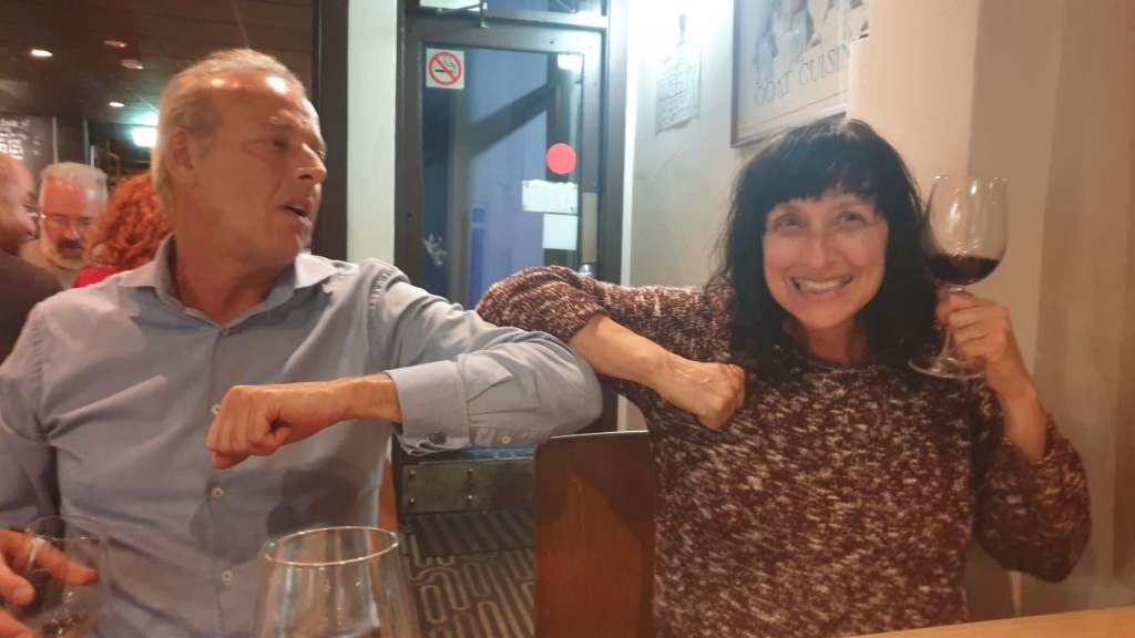 The Covid-19 epidemic was all over the news and was having an effect on every day life. At this stage we hadn’t yet had lockdown but the world was getting more and more aware of cross infections. We even took to the elbow greeting rather than hugs when greeting family. This is Jenni and her brother Mark greeting at our last meal out in The Merton Hotel in Sydney.