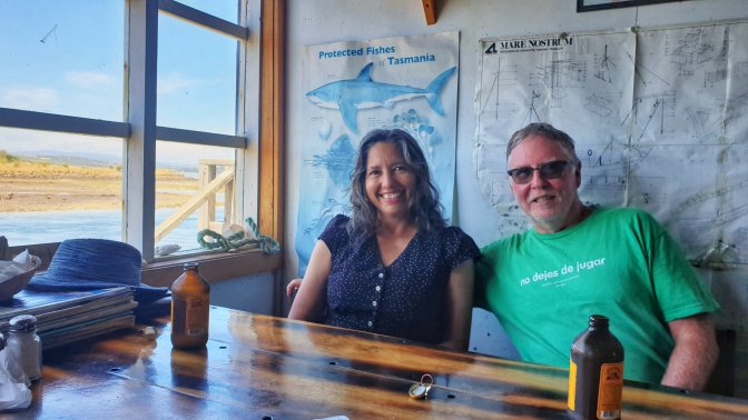 Jenni and I try and treat our guests to fish and chips at the Dunalley Fish Market if at all possible. They have been voted the best fish and chips in Tasmania. We think they deserve it. Thankfully we had the time to take Ian and and Shelley there.
