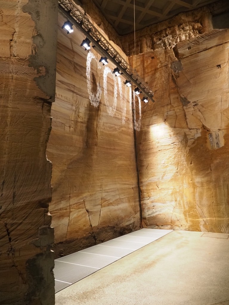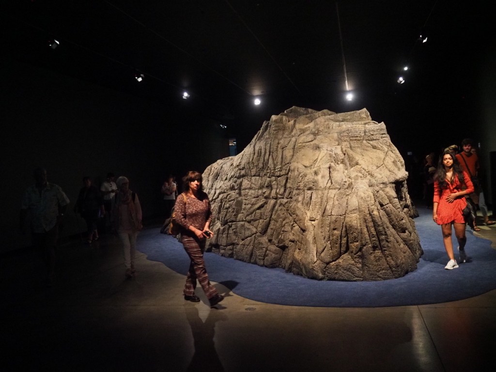 There was a large room almost filled with a massive artificial, but realistic looking, boulder.