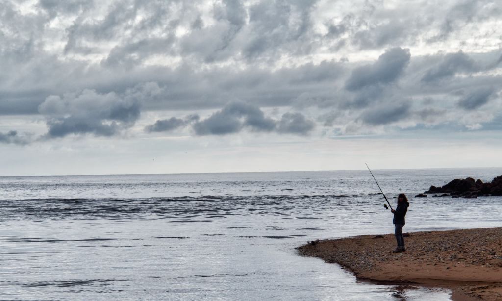 The place also boasted a row boat as part of the deal. Well, of course, we had to give that a go! Being beside the river in a fisherman’s cottage set our intent to do some fishing. We had borrowed some gear from friends Sandee and Brian and were hoping to catch something for dinner. When the sun rose it was low tide, so no boating till midday. We grabbed our rods and headed for the river mouth.
