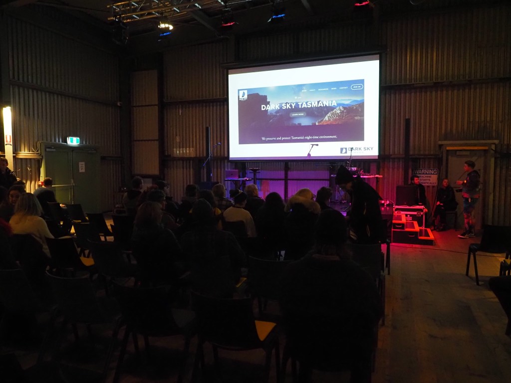 Next we were back up at the Tin Shed for a session on the dark skies of Tasmania and why they are rare resource.