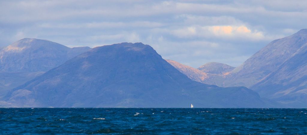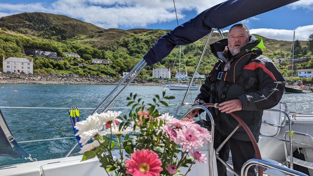 We did find sustenance at Fort William, we also found a bottle shop/ carry out and stocked up on some beer and wine and stuff for the boat trip. Mallaig next trip. We hit some road works that delayed our arrival at Mallaig and arrived an hour later than scheduled but still found Andy and Jenny waiting for us on the dock. We quickly moved our stuff from the car to the boat and with set off for the Island of Canna in the Inner Hebrides.