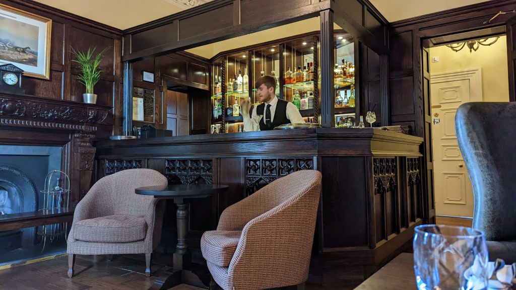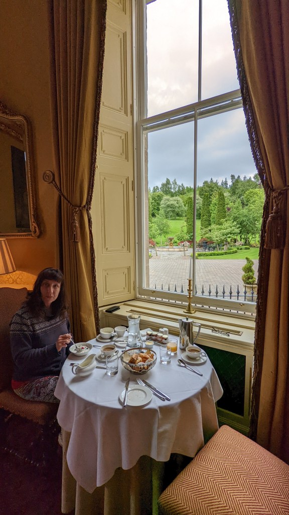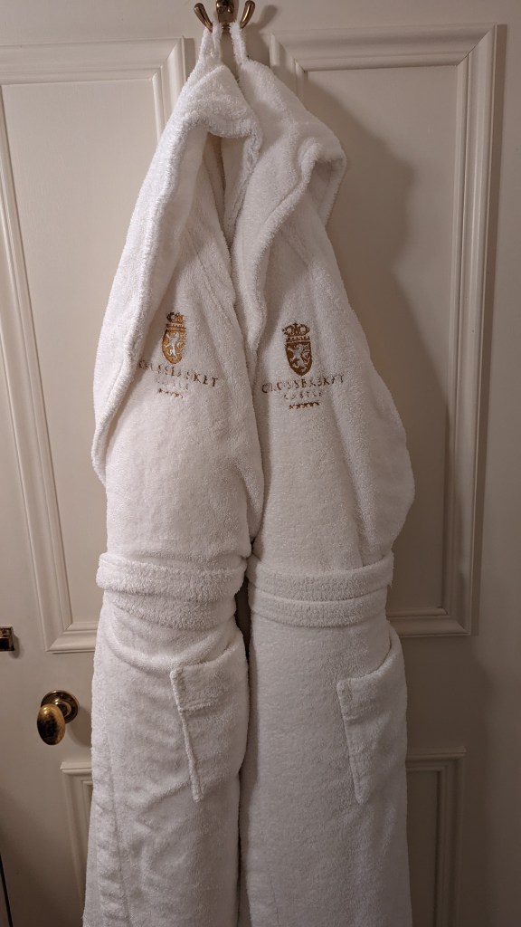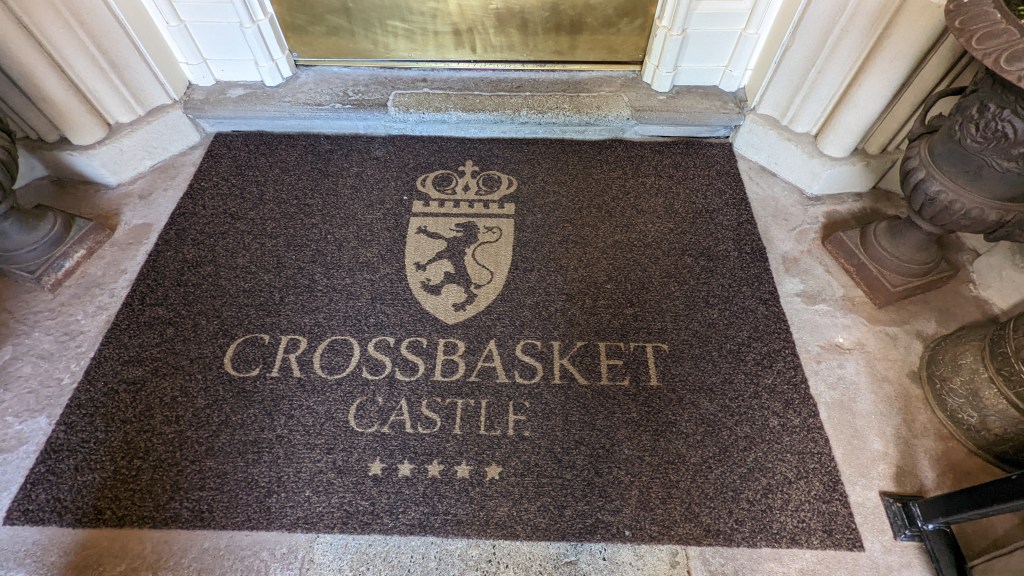 The ferry crossing was uneventful, didn’t even take one picture. Our next hotel on the other hand is another matter. As a pseudo birthday treat to ourselves we decided to stay in a castle in Scotland. Crossbasket Castle in fact, just outside Glasgow. It turned out to be more than we had hoped for.