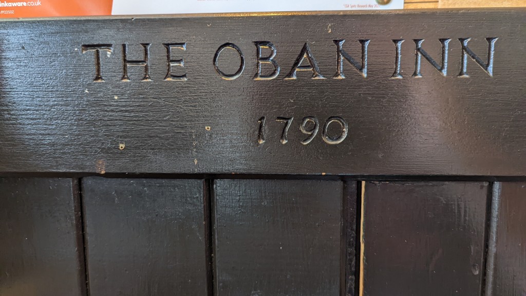 We left Crossbasket Castle and onward to our next overnight in Oban. We arrived at lunchtime and set forth looking for a place to eat. We spied the Oban Inn right across the harbour and and walked there.