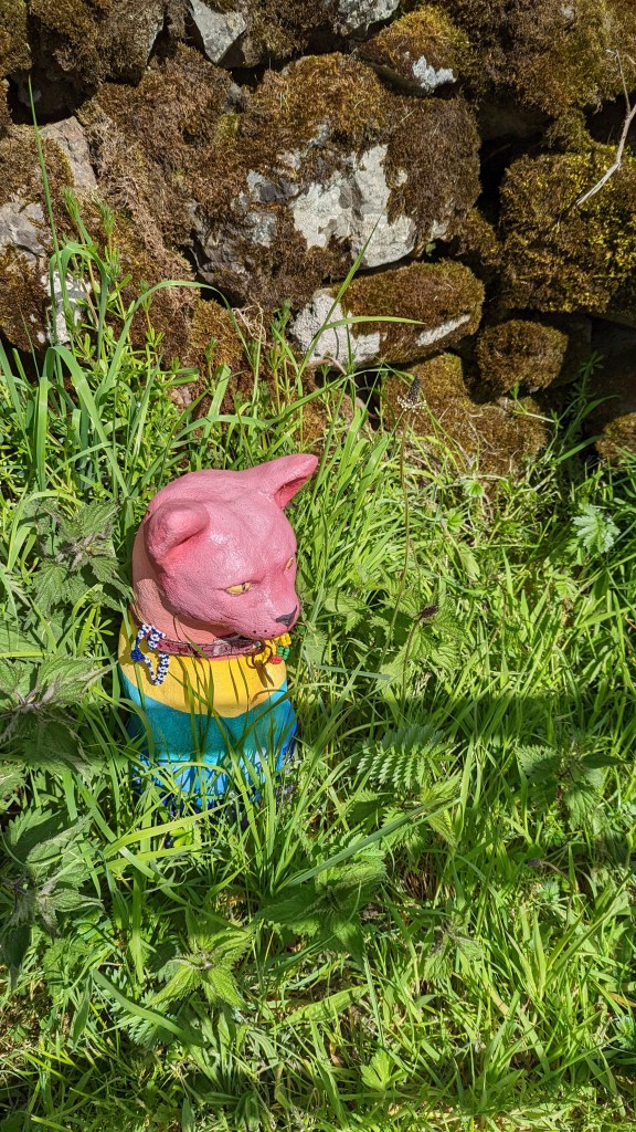 Based on a poem by John Lorne Campbell of Canna to his beloved Siamese cat, Pooni, who died at the ripe old age of 18 the Cats Gu Leor (Gaelic for Plenty of Cats) ‘Trail’ was created. During a two week artist residency, devised by Archivist for the National Trust for Scotland on Canna, Fiona J Mackenzie and delivered by artist Yvonne Lyon and Raine Clarke of Glasgow installed 12 cats around the island. They are called Sir Pooji Boyte, Kinkipoo, Mrs Pink, Wicked Willie, Pinxtu, Pepa, Magnus, Carola, Reuben, Piccola, Tom Beattie and of course Pooni after the original inspiration. Here is the article of the story. https://pethistories.wordpress.com/2019/02/28/canna-the-island-kingdom-of-cats/