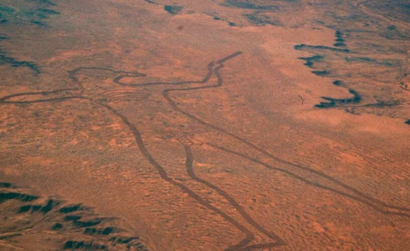 The Real Marree Man is a 2.7 kms tall geoglyph dug out of the desert sand near Marree. It depicts an aboriginal man weilding a throwing stick or boomerang. Its origins are unknown but what is known, because of satellite images, is it was created between May and June in 1998. It is one of the largest geoglyphs in the world and largely unknown outside of Australia.