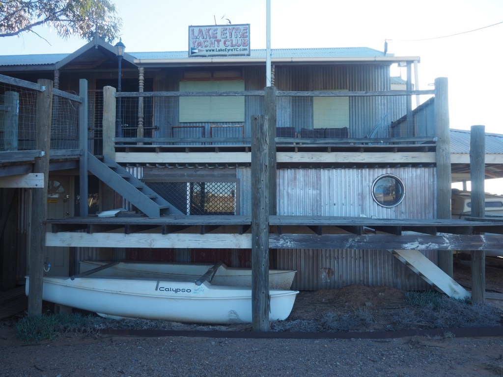 From Wikipedia: “The Lake Eyre Yacht Club is a dedicated group of sailors who sail on the lake’s floods, including recent trips in 1997, 2000, 2001, 2004, 2007 and 2009.[22] A number of 6 m (20 ft) trailer sailers sailed on Kati Thanda–Lake Eyre in 1975, 1976, and 1984, when the flood depth reached 3–6 m (9.8–19.7 ft). In July 2010 The Yacht Club held its first regatta since 1976 and its first on Lake Killamperpunna, a freshwater lake on Cooper Creek. The Cooper had reached Kati Thanda–Lake Eyre for the first time since 1990. It is estimated that these waters reach Lake Eyre roughly 8 years in 100. When the lake is full, a notable phenomenon is that around midday the surface can often become very flat. The surface then reflects the sky in a way that leaves both the horizon and water surface virtually impossible to see. The commodore of the Lake Eyre Yacht Club has stated that sailing during this time has the appearance of sailing in the sky.”