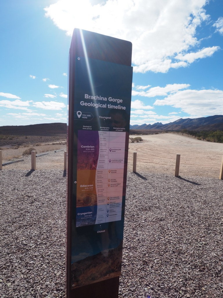 From the web site: “Brachina Gorge is home to some of Australia’s most significant geological and palaeontological records, the trail lets you discover million-year-old rocks, fossilised animal remains, sediment deposits and even debris from the impact of a large meteorite.”