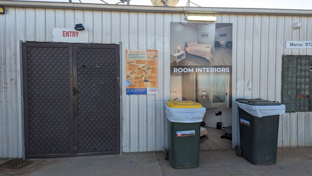 We checked into the historic, heritage listed, Maree Hotel for a one night stop over. Well, not the hotel exactly, one of the dongas / portacabins out the back of the hotel.